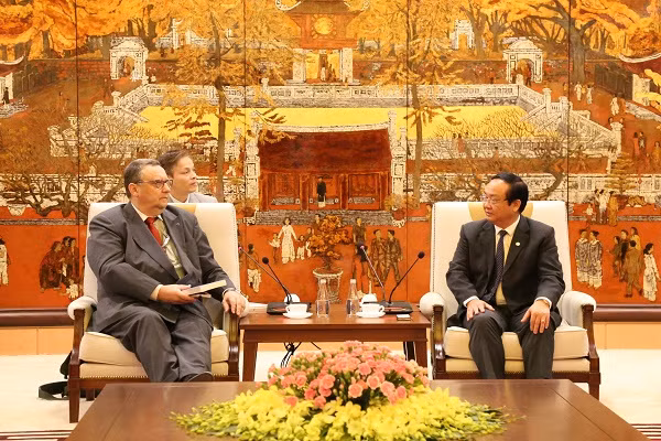 Phó Chủ tịch UBND TP Hà Nội Nguyễn Thế Hùng trao đổi cùng ông Kari Kahiluoto, Đại sứ Phần Lan
