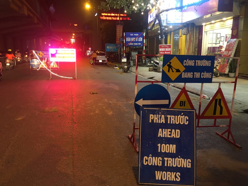 Theo Sở GTVT Hà Nội, đơn vị thi công thực hiện rào chắn di động từ mép vỉa hè ra lòng đường khoảng 8-10m để thi công kết cấu mặt đường, bề rộng phần đường còn lại khoảng 8-10m để phân luồng cho các phương tiện lưu thông.