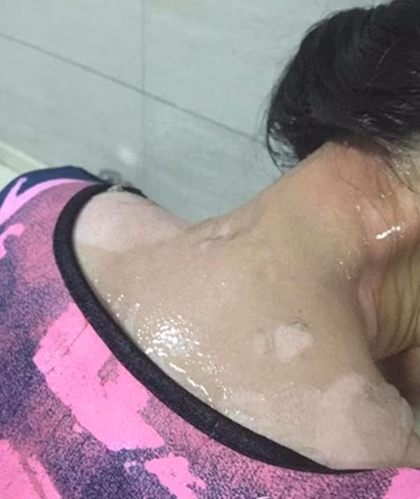 Cô Liu được đưa vào bệnh viện với tình trạng bỏng 42%