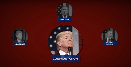 Và khi ông Donald Trump lên nắm quyền, cách tiếp cận ngoại giao của Mỹ nhằm đối phó với Triều Tiên một lần nữa quay ngược hoàn toàn. Tổng thống Trump cho rằng sẽ không lặp lại những sai lầm của chính quyền trước đây vì đã “đặt nước Mỹ vào thế rất nguy hiểm”. Tổng thống Trump muốn đối đầu, hoàn toàn cô lập Triều Tiên.