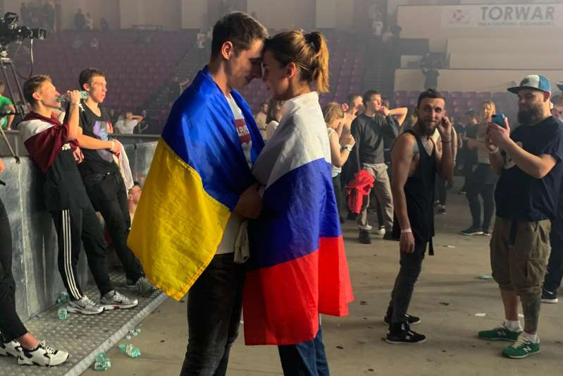 Nhưng bức ảnh chụp khoảnh khắc cặp đôi bày tỏ tình cảm tự nhiên khi cùng khoác cờ Nga - Ukraine thực sự gây chú ý, vì nó được cộng hưởng trong một thời điểm đặc biệt.