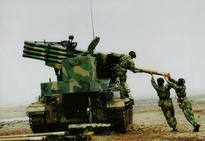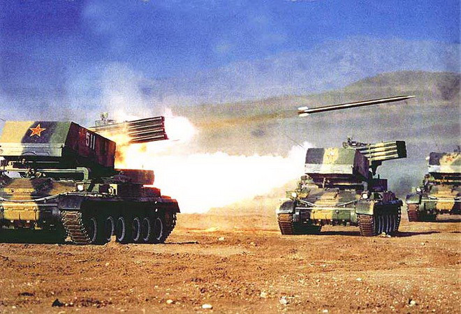 ANTD.VN - Pháo phản lực phóng loạt PZH89 (Type 89) được Trung Quốc chế tạo nhằm yểm trợ hỏa lực cho các đơn vị xe tăng, vai trò của nó tương tự TOS-1 Buratino Nga.