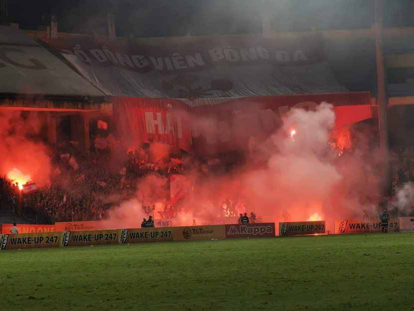 Như thông tin chúng tôi đã đưa, trận đấu giữa Hà Nội FC và Hải Phòng tại vòng 6 V-League 2019 tối 21-4 đã bị gián đoạn nhiều lần, do CĐV đội khách có những hành vi quá khích, liên tục đốt pháo sáng trên khán đài và ném xuống sân gây nguy hiểm cho các cầu thủ và mất an toàn PCCC.