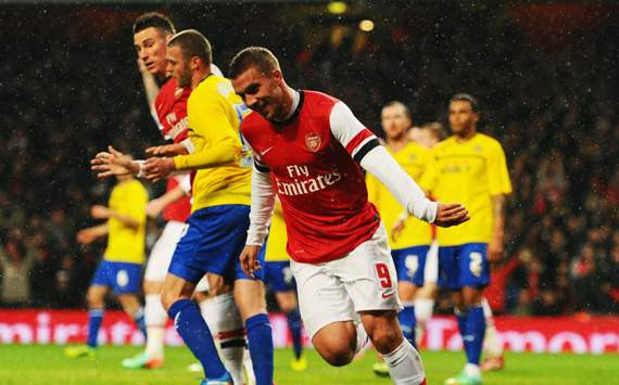 Với đội hình chất lượng như vậy không khó để đội chủ nhà áp đặt thế trận ngay từ những phút đầu của trận đấu. Chỉ mất đúng 15 phút, tiền đạo người Đức – Podolski đã cụ thể hóa bằng 1 bàn thắng cho Pháo thủ. Không lâu sau đó, tiếp tục là tiền đạo áo số 9 lập công bằng pha đánh đầu cận thành ở phút 27, nhân đôi cách biệt cho đội nhà.