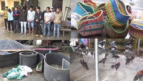 Cụ thể, sau quá trình trinh sát nắm tình hình, khoảng 14h ngày 12-2, tổ công tác của Công an huyện Thọ Xuân đã bắt quả tang 28 đối tượng đang sát phạt tại trường gà trên địa bàn xã Thọ Lộc, huyện Thọ Xuân. Lực lượng Công an đã thu giữ 31 con gà, 32 xe máy, hơn 22,1 triệu đồng và nhiều tang vật khác có liên quan tại hiện trường.