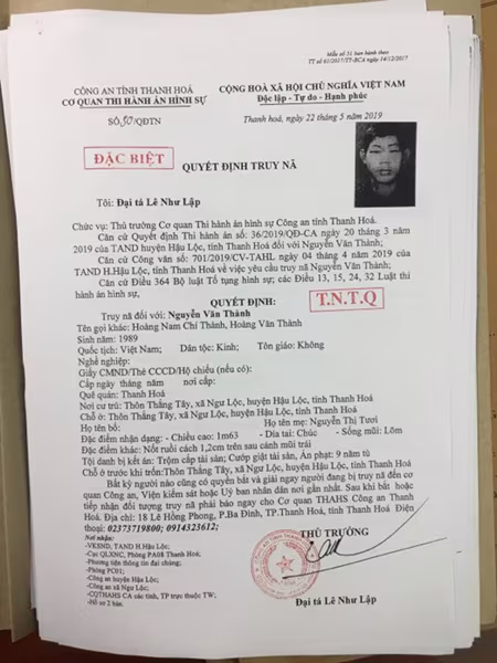 Đáng chú ý, CAP Quảng An xác định danh tính đối tượng là Nguyễn Văn Thành (SN 1989), trú tại xã Ngư Lộc, huyện Hậu Lộc, tỉnh Thanh Hóa; đang trốn quyết định truy nã đặc biệt ngày 22-5-2019 của Cơ quan CSĐT- Công an tỉnh Thanh Hóa. Đối tượng Thành bị tuyên mức án 9 năm tù về tội cướp giật.