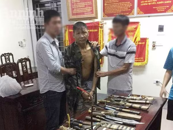 Tang vật thu giữ được là 9 gói heroin, 1 điện thoại di động, 1 quả lựu đạn mỏ vịt, 1 cân tiểu ly; 30 dao nhọn, kiếm các loại và 4 khẩu súng tự chế.