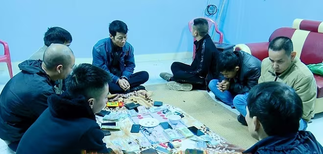 Tại thời điểm kiểm tra, lực lượng công an phát hiện, bắt quả tang 8 đối tượng đang đánh bạc bằng hình thức xóc đĩa. Tại chỗ, công an đã thu giữ 1 bộ bát đĩa, 4 quân vị, 9 điện thoại di động và hơn 205 triệu đồng.