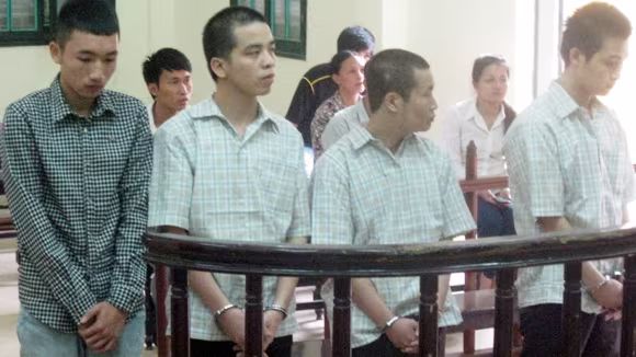 Ngô Văn Cường (thứ hai, từ phải sang) cùng các bị cáo liên quan