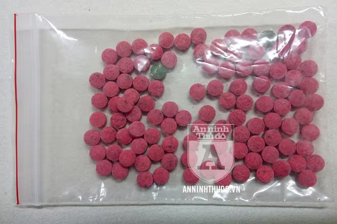 Qua quá trình kiểm đếm, cảnh sát ghi nhận có tổng cộng 105 viên ma túy, trong đó có 2 viên màu xanh, còn lại tất cả đều là màu hồng.