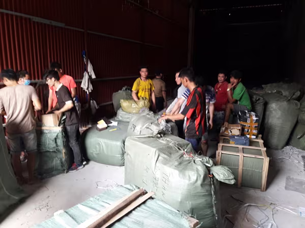 Cụ thể, trên xe container BKS: 77C-130.88, cơ quan Công an phát hiện hàng hóa gồm: quần áo, phụ kiện điện tử, giày, dép, túi xách, thiết bị vệ sinh, đồ tiêu dùng... khoảng hơn 15 tấn hàng do nước ngoài sản xuất không có hoá đơn chứng từ, có dấu hiệu vi phạm sở hữu trí tuệ.