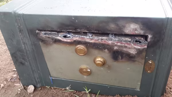 Chiếc két sắt bị Thông dùng máy hàn xì phá thủng