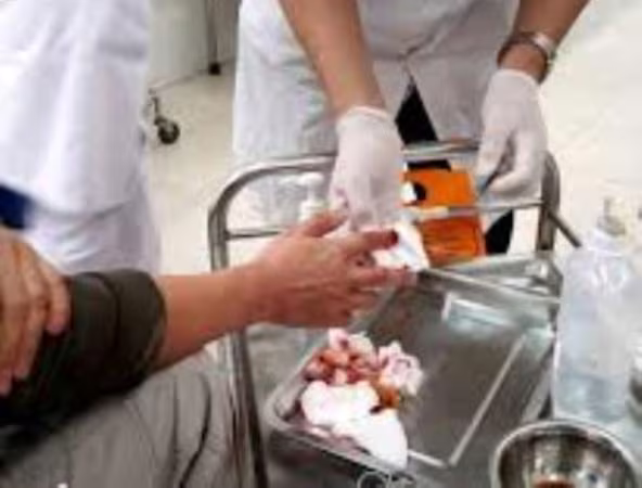 Bàn tay phải của nhà báo Đỗ Doãn Hoàng bị các đối tượng hành hung gây thương tích phải vào bệnh viện điều trị