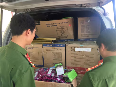 Cảnh sát kinh tế kiểm tra hàng hóa chuẩn bị bán cho người dân