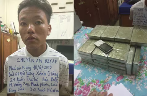 Theo đó, vào khoảng 18h ngày 10-6, tại bản Bắc, huyện Viêng Xay, tỉnh Hủa Phăn (Lào) lực lượng Bộ đội Biên phòng (BĐBP) Nghệ An phát hiện Xênh Giàng đang di chuyển với nhiều biểu hiện đáng ngờ. Khi kiểm tra, cơ quan chức năng phát hiện Giàng có mang theo 30 bánh heroin.