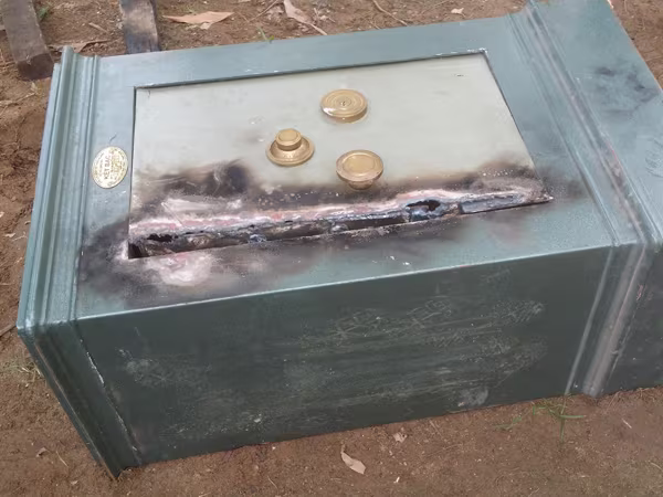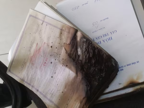 Hóa đơn, tài liệu do Thông làm cháy khi dùng máy hàn hơi khò phá két sắt