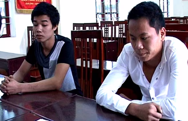 Các đối tượng Dậu và Út ra đầu thú tại CAH Đình Lập, tỉnh Lạng Sơn