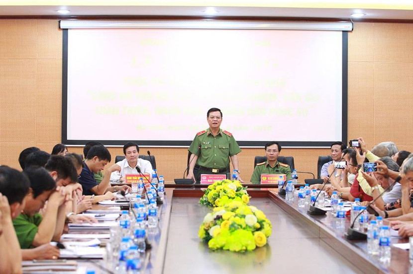 Thiếu tướng Đào Thanh Hải, Phó Giám đốc Công an TP Hà Nội phát biểu tại lễ phát động cuộc thi ảnh