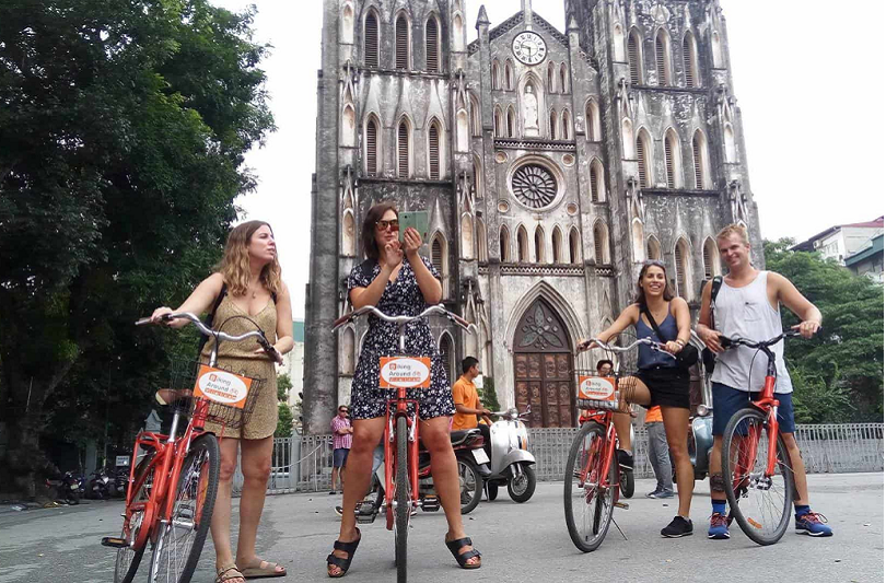 Nhiều khách du lịch nước ngoài khi tới Hà Nội đã chọn xe đạp làm phương tiện để khám phá thành phố