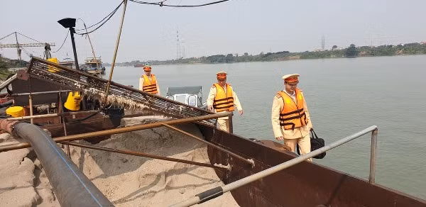 Đội CSGT đường thủy số 3 kiểm tra xử lý tàu khai thác cát trái phép