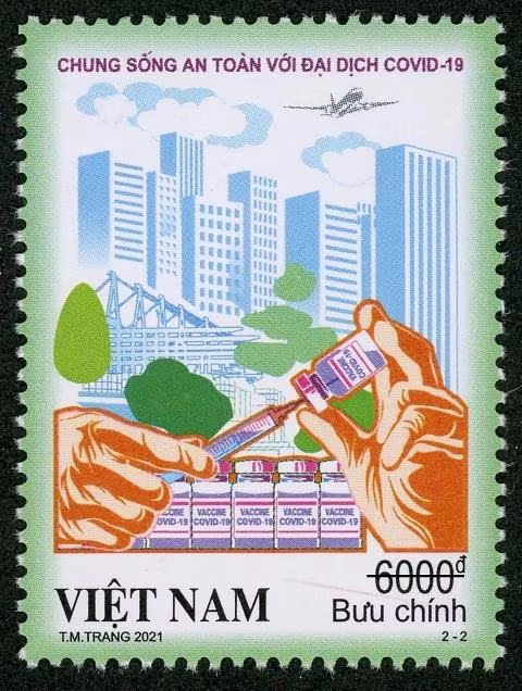 Bộ tem “Chung sống an toàn với đại dịch COVID-19” có khuôn khổ 32 x 43(mm) do họa sĩ Tô Minh Trang (Tổng công ty Bưu điện Việt Nam) thiết kế. Bộ tem được cung ứng tại 63 Bưu điện tỉnh, thành phố và được lưu hành rộng rãi tại 192 quốc gia và vùng lãnh thổ thuộc Tổ chức Liên minh Bưu chính thế giới. Bên cạnh việc phát hành bộ tem, Bưu điện Việt Nam cũng đưa ra các sản phẩm cùng chủ đề: phong bì FDC, bưu thiếp, tem cá nhân....