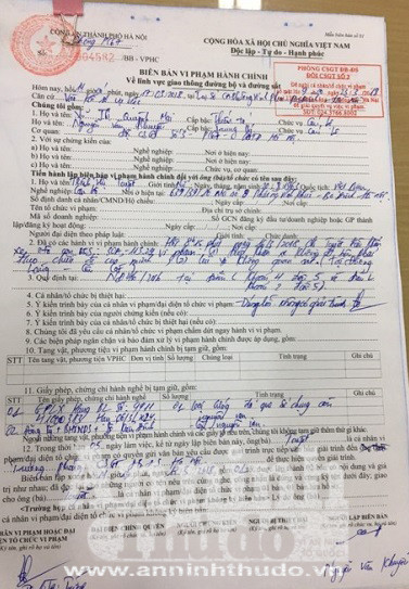 Biên bản xử phạt hành chính nữ lái xe quay đầu xe trên cầu Cót