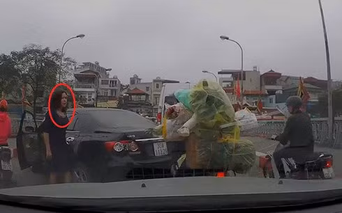 Hình ảnh nữ tài xế xuống xe gây gổ với người đi xe máy