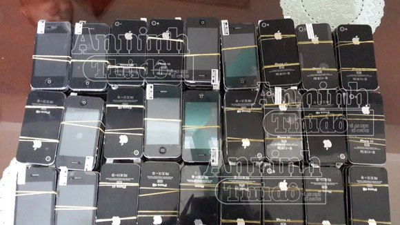 Tại đây, qua kiểm đếm có khoảng hơn 100 chiếc điện thoại Iphone 4s màu đen, do nước ngoài sản xuất.