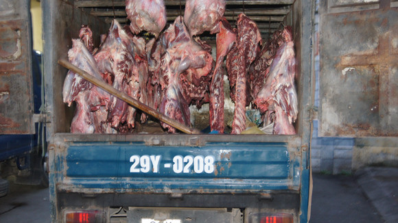 Trước đó, vào 3h ngày 28-3, tại Quốc lộ 5, quận Hồng Bàng, đoàn kiểm tra liên ngành phát hiện xe ô tô BKS: 99C-01157, do Nguyễn Quang Thoại, SN 1971, trú tại Thạch An, Thanh Hà, Hải Dương, điều khiển chở 350kg thịt bò, 100kg xương bò không rõ nguồn gốc xuất xứ, chưa qua kiểm dịch vệ sinh an toàn thực phẩm.