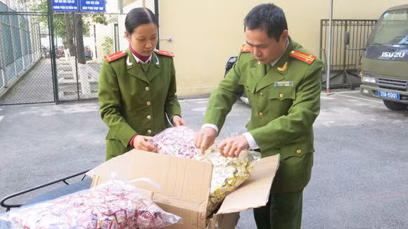 Đáng chú ý, trong số 50 tấn bánh kẹo, ô mai... các loại nhãn mác Trung Quốc, không có giấy tờ chứng minh nguồn gốc, có nhiều sản phẩm dù được đóng gói trong các thùng carton ngoài in chữ Trung Quốc, song khi bóc rời từng hộp sản phẩm ra kiểm tra, tem nhãn từng hộp sản phẩm in hoàn toàn chữ Việt Nam. Điển hình như các hộp quẩy màu sắc sặc sỡ bán nhiều ở cổng các trường học, vỏ hộp in tiếng Việt là: “Mạnh mẽ cua - thịt protein đậu nành”. Cuối giờ chiều qua, lực lượng chức năng vẫn đang niêm phong hàng nghìn thùng carton chứa bánh mứt kẹo các loại trong kho hàng này để xác minh, làm rõ nguồn gốc, cũng như chủ hàng.