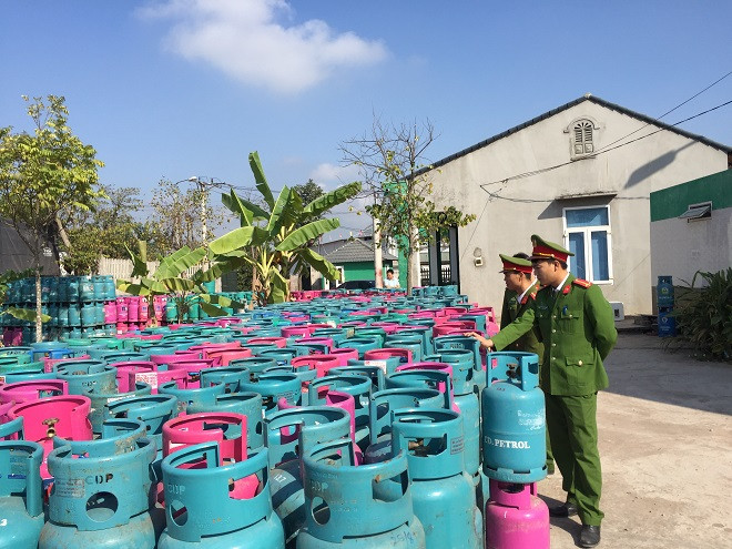 Lực lượng chức năng thu giữ số lượng lớn bình gas có dấu hiệu san chiết trái phép