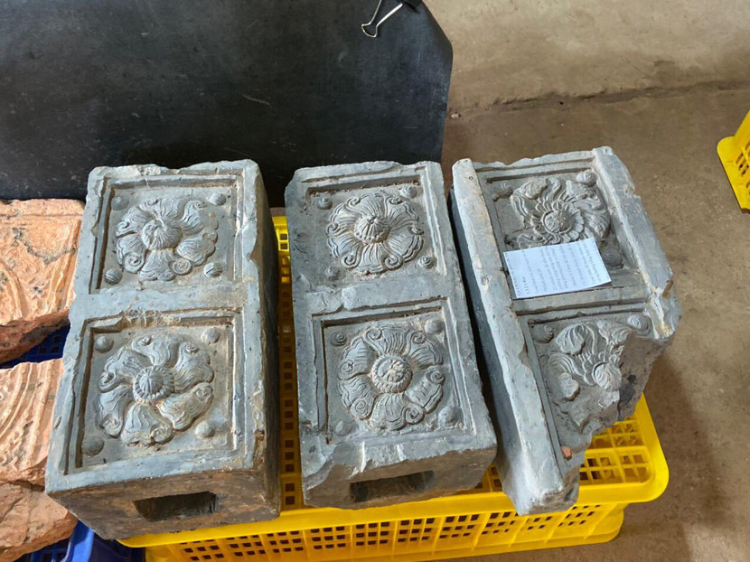 Cuộc khai quật đã tìm thấy nhiều di vật quý trong đó điển hình là một số viên gạch bìa in hình hoa văn ô trám (TK 3-6), ngói âm dương xám, đầu ngói hoa sen và bát gốm men màu (TK 7-9). Thời Thời Đinh- Tiền Lê là một số đầu ngói màu đỏ có hình cánh sen.