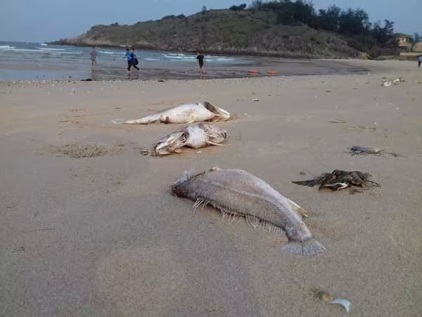 Cá chết hàng loạt dạt vào dọc bờ biển miền Trung