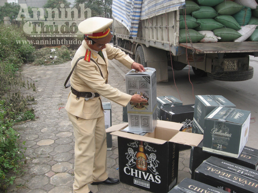 Trước những biểu hiện đáng ngờ, Trung tá Hoàng Hữu Luận đã chỉ đạo tổ công tác ập tới kiểm tra hành chính. Vừa nhìn thấy CSGT, chiếc xe ô tô 4 chỗ lao vút bỏ chạy. Kiểm tra thùng xe tải, CSGT phát hiện lẫn với hàng trăm bao tải gạo, thóc là những thùng rượu ngoại mang nhãn hiệu như Chivas, Ballatines.