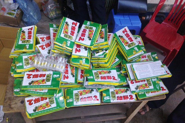 Đoàn kiểm tra tiến hành niêm phong và tịch thu toàn bộ số lượng thuốc thúc chín hoa quả nói trên. Ngoài ra, tiến hành niêm phong toàn bộ số thuốc có nhãn ghi không đúng quy định, thuốc BVTV hết hạn sử dụng, giao chủ cửa hàng bảo quản nguyên trạng, chờ xử lý theo quy định.