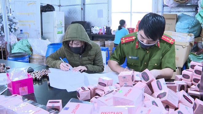 Trước đó, khoảng 9h sáng 13-4, Đội Cảnh sát Kinh tế, Công an quận Đống Đa phối hợp với Đội Quản lý thị trường số 4 (QLTT), Cục QLTT Hà Nội kiểm tra cơ sở kinh doanh tại ngõ 26 - phố Hoàng Cầu, quận Đống Đa, do bà Hoàng Thị Kim Dung (SN 1984, trú tại xã Thắng Thủy, huyện Vĩnh Bảo, Hải Phòng, hiện ở phường Trung Liệt, quận Đống Đa) làm chủ.
