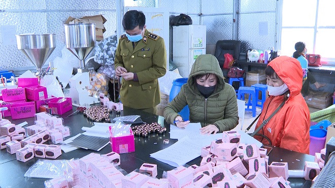 Qua kiểm đếm, cơ quan chức năng xác định có 1.027 sản phẩm nước rửa tay, 5.650 sản phẩm kem trị nám, 50 thùng sản phẩm khác không rõ nguồn gốc xuất xứ, máy móc, nguyên vật liệu, để sản xuất mỹ phẩm. Ước tính giá trị hàng trên 1 tỷ đồng.
