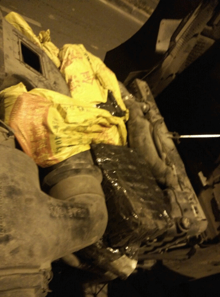 Điện thoại đựng trong các bao tải giấu dưới hầm máy xe container