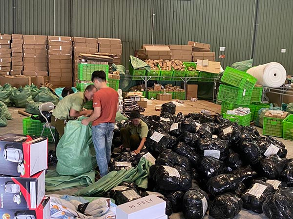 Tổng số hàng hóa có số lượng trên 100.000 sản phẩm và hơn 20 bao hàng hóa đang được tiếp tục kiểm đếm.