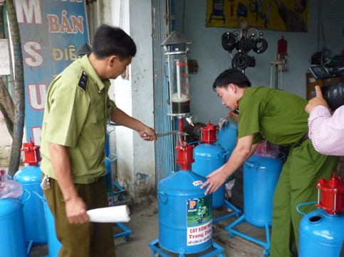 Sáng 6- 6, tổ công tác đội Kinh tế thương mại- Phòng CSĐT tội phạm về TTQLKT&CV CATP Hà Nội phối hợp cùng đội QLTT số 7- Chi cục QLTT Hà Nội đã bất ngờ kiểm tra hành chính cơ sở kinh doanh của ông Dương Công Dũng, 58 tuổi, trú ở thôn An Hạ, xã An Thượng, huyện Hoài Đức. Nhiều năm nay, cơ sở này “nức tiếng” là địa chỉ cho ra lò những cột bơm xăng mini, với số lượng hàng chục sản phẩm mỗi tháng.