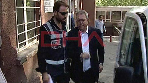 Chủ tịch CLB Fenerbahce Aziz Yildirim (phải) bị cảnh sát bắt giữ - Ảnh: DHA