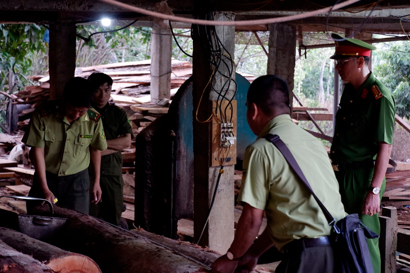 Qua công tác trinh sát nắm tình hình, vào khoảng 15h ngày 25 – 3, tổ công tác của phòng Cảnh sát môi trường Công an tỉnh Đắk Lắk phối hợp với Công an huyện Ea H’leo tiến hành kiểm tra và phát hiện tại xưởng gỗ của ông Trần Đức Thịnh (SN 1963), ở thôn 7, xã Ea H’Leo có hành vi tàng trữ, chế biến lâm sản trái phép.