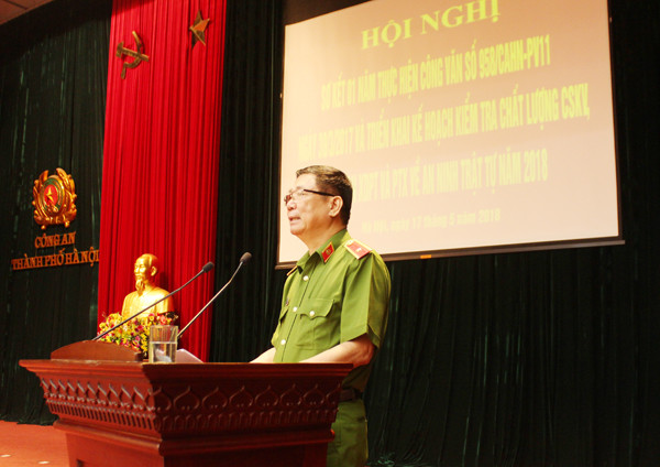 Cũng tại hội nghị, Thượng tá Ngô Duy Thắng, Trưởng phòng Cảnh sát QLHC về TTXH - CATP Hà Nội đã thông qua kế hoạch số 81 của CATP về kiểm tra chất lượng CSKV, Công an XDPT và PTX về ANTT thành phố Hà Nội năm 2018.