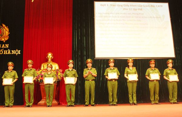 Thiếu tướng Đinh Văn Toản trao Giấy khen của Giám đốc CATP cho các tập thể có thành tích xuất sắc trong thực hiện Công văn 958 của CATP