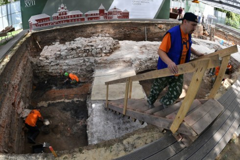 Các nhà khảo cổ làm việc tại khu vườn chính trong khuôn viên Điện Kremlin (Ảnh Sputnik)