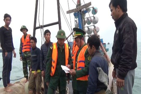 Trước đó, vào lúc 22h45 ngày 20-2, cách Vũng Chùa (thuộc xã Quảng Đông, H. Quảng Trạch, tỉnh Quảng Bình) gần một hải lý, tàu cá số hiệu TH 90187 TS do Nguyễn Văn Vui (SN 1987, ở xã Hải Thanh, huyện Tĩnh Gia, tỉnh Thanh Hóa) làm chủ tàu cùng với 5 thuyền viên sử dụng mìn tự chế để đánh bắt hải sản thì bị lực lượng biên phòng phát hiện.