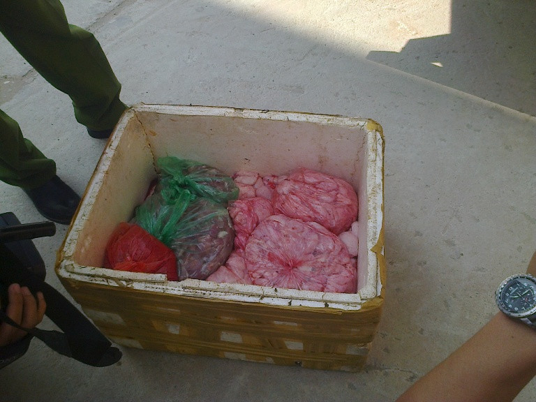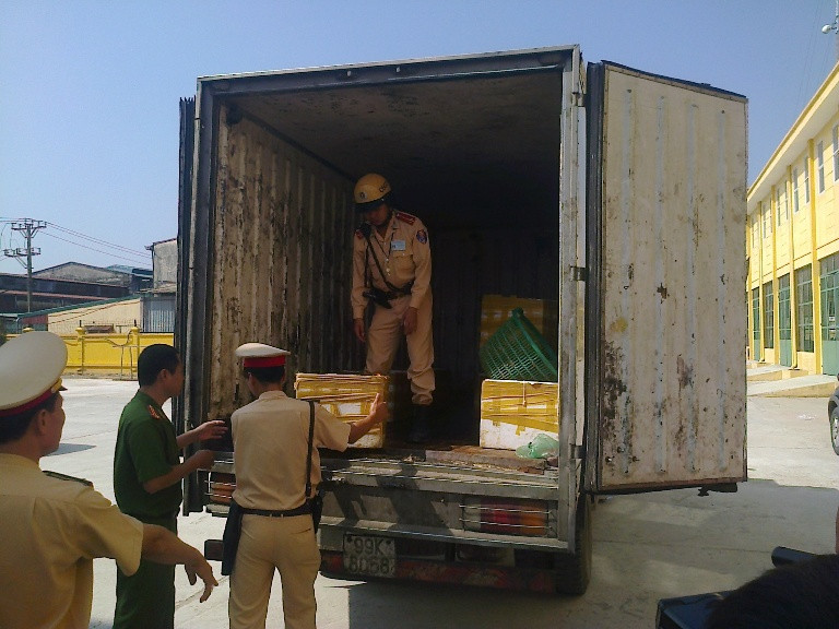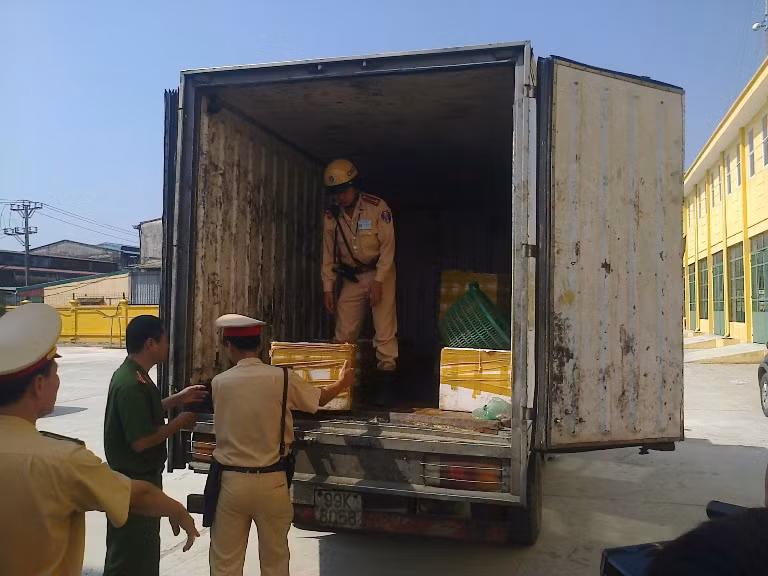 Quá trình lập biên bản xử lý vi phạm hành chính trên, tổ công tác phát hiện trong thùng xe tải có những dấu hiệu nghi vấn, yêu cầu lái xe mở thùng xe ra kiểm tra. Lái xe Thanh nói trong thùng xe chỉ có ít hàng hóa đông lạnh theo đúng tiêu chuẩn vệ sinh an toàn thực phẩm chứ không hề có hàng hóa gì khác.