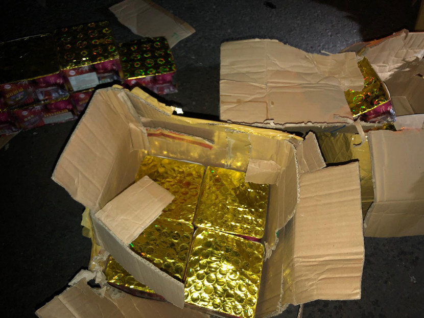 Qua kiểm tra, lực lượng chức năng phát hiện, dưới khoang chứa hành lý của xe có 3 thùng cát tông bên trong chứa 24 hộp pháo hoa với tổng trọng lượng 48kg.