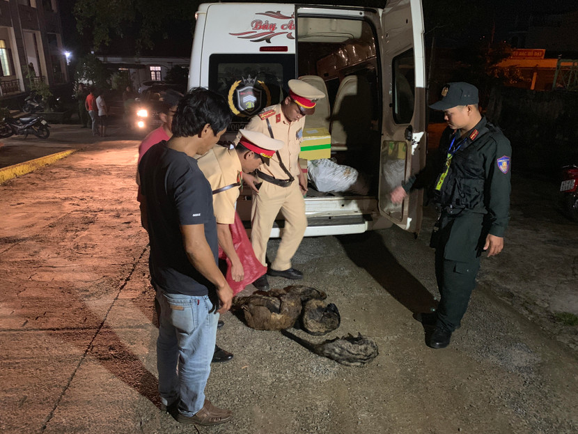 Lái xe khách trên là Trần Văn Hoàng (SN 1971), trú ở xã Hoà Thuận, TP Buôn Ma Thuột, tỉnh Đắk Lắk. Tại thời điểm kiểm tra anh Hoàng ko xuất trình được giấy tờ chứng minh nguồn gốc số động vật trên. Anh Hoàng khai nhận được một người khách thuê vận chuyển số hàng trên từ huyện Đức Cơ, tỉnh Gia Lai về giao tại khu vực phường Tân Lập, TP Buôn Ma Thuột cho một người chưa rõ lai lịch.