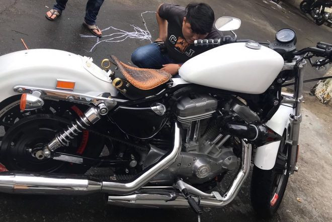 Tại thời điểm kiểm tra, tổ công tác phát hiện 1 xe mô tô màu trắng BKS:53A3-022.XX tên chủ xe là Dõan Kim L, tại thành phố Hồ Chí Minh. Bằng biện pháp nghiệp vụ tổ công tác xác minh được BKS 53A3-022.XX không đúng thông tin trên đăng ký.